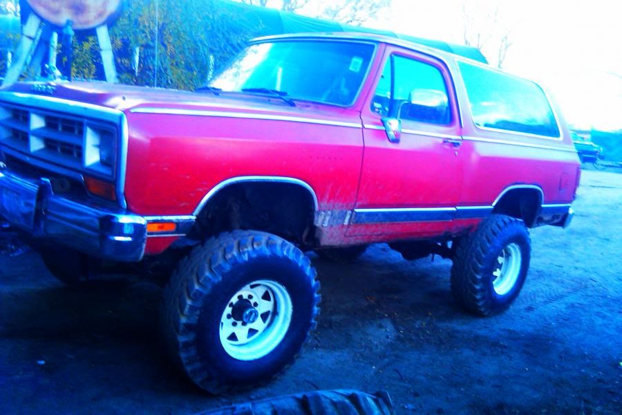 starting with a 1988 ramcharger no motor tranny or t-case, 8-lug 44 front 14 bolt rear, and some BS suspension, my plans are a '76 360,727,208, and do the lift the right way, will get pics of suspension cobble in the next couple days