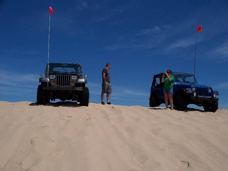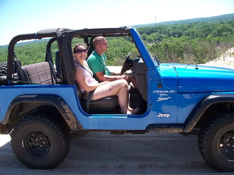 My brother and sister-in-law in her Jeep with my old rims and tires.
