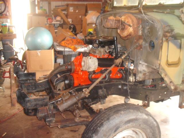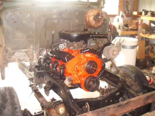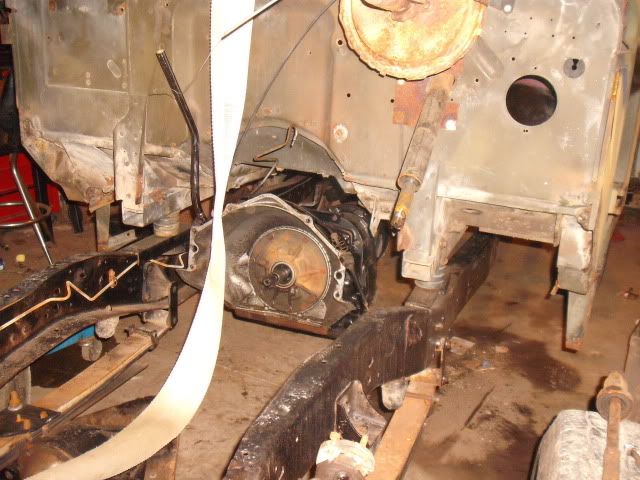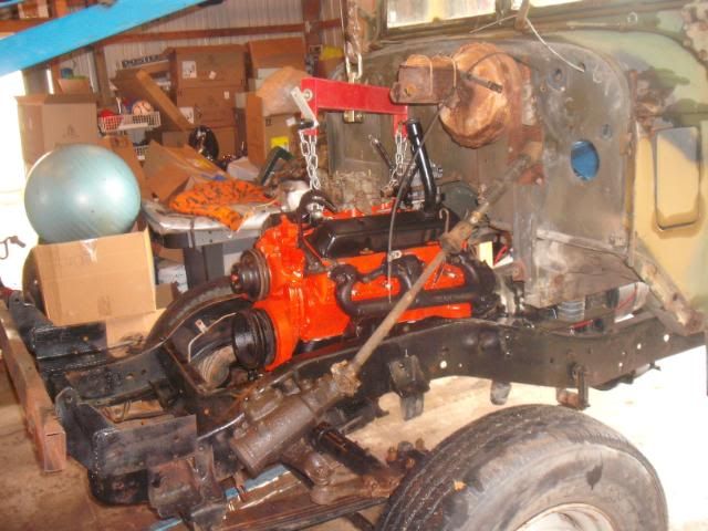 It's in, bolted to the trans and frame-rails, just gotta hook up all the sheot to make it start, run cool and tell me what's going on inside!