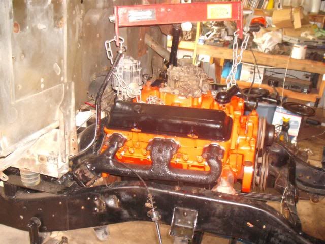 I got the puppy bolted in today!  The sbc slipped into the engine bay like a fat man into a hot bath...