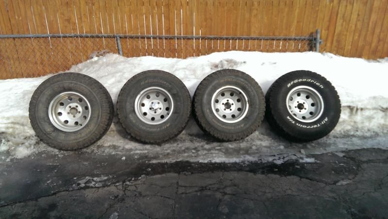 I was saving these for a jeep project, but now that I'm buying a K5 I won't need them. Tires are 33x12.50x15 BFG All-Terrian KO's with about 50% tread life or better. They ran nice and smooth on my last Jeep, but do have some weathering starting to show (nothing bad). Wheels are American Racing "Baja's" that are 15x8 with a 3.75" offset and a 5x4.5 bolt pattern. They are in nice shape and not all dinged up. Asking $450 obo. **At this time I would prefer to sell together and not have to deal with dismounting**. Located in Clarkston,MI 48346. Calling or texting works best. 248-296-4764.