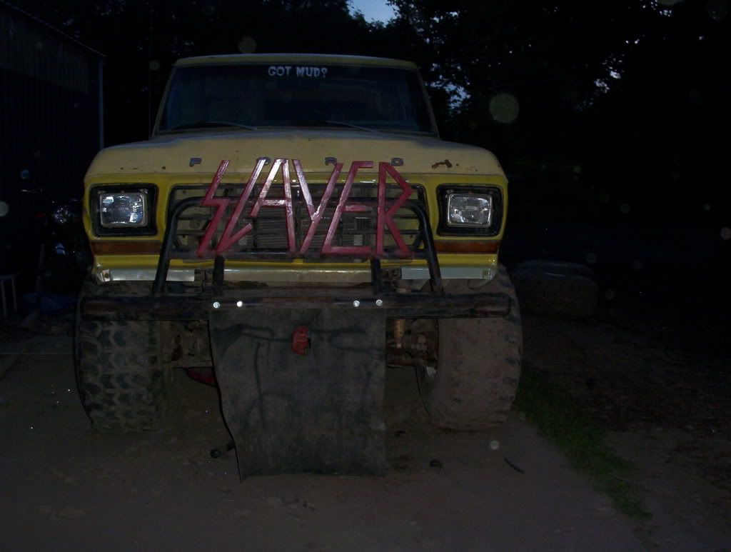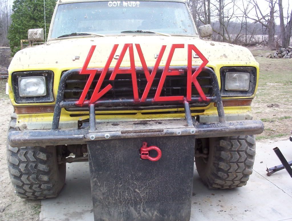 well i decided the "SLAYER" on the front doesn't look as good as I thought it was going to so it may get relocated on the back or I might just airbrush it on after I paint the bronco.