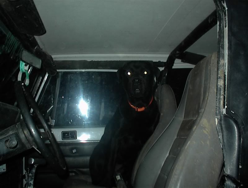 my lab/rot mix is good most the time... freaks out a lil when ya start cranking music.. but as far as bumps donuts and drifting goes... she kinda likes it hahaha.