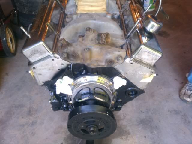 Plugs are in and the oil pump got primed a few times.  Ended up having to tear the starter apart and cleaning it from lack of use.  PITA to get it back together but its back on.  All the bell housing bolts are in and tight, Balancer and crank pully on and tight, and got the distributor in and roughly in the right spot.