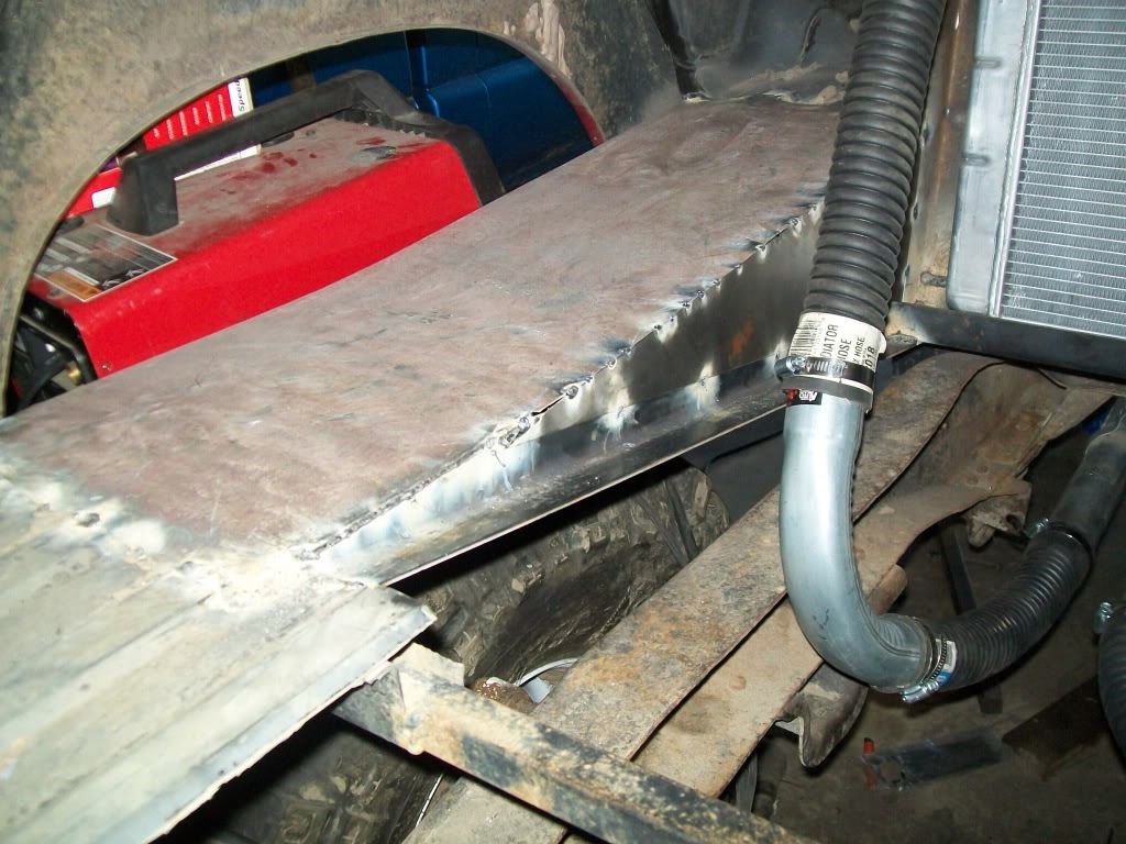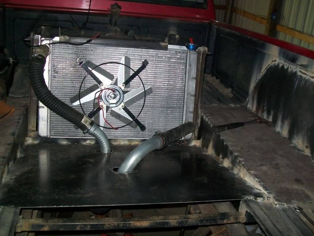 Well picked up another trans and got it back in the truck ready to go.  Working on getting the radiator mounted in the back and all the coolant pipes ran to the back.  Picked up a 4 core aluminum 31"x19" and a permacool aluminum blade electric fan.  Rewire a few things and I'll be back in the saddle again.  Hopefully.