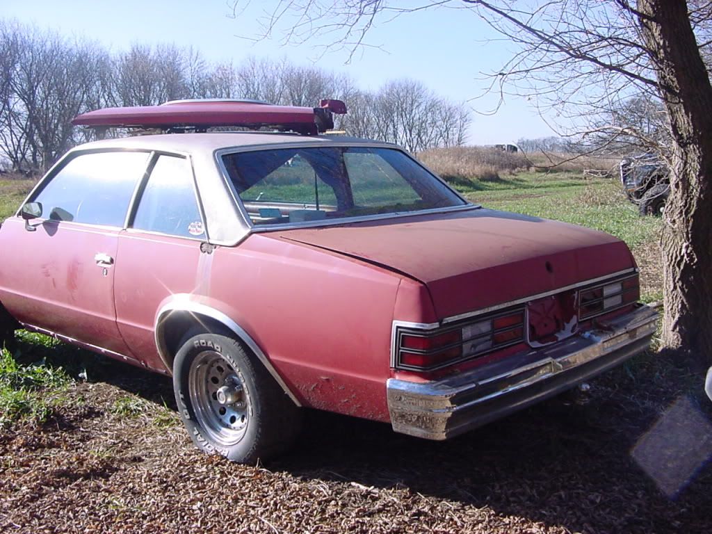 After high school graduation i took some of the money i made from my graduation party and bought a 78 chevy malibu and am planning to make a bad ass hot rod out of it it is an all original car its got the 3.3 v6 with a 3 speed manual trans very low miles it has less than 30,000 miles on it. i bought it off a real scruffy hobo it sat for more than ten years in a field uncovered and was never turned over the guy threw some gas and a battery in it and it fired right up i couldnt believe it! he wanted $3000 for it and i turned down for about a month then when im working on my truck one day he comes rolling up with it on a trailor and told me $800 or its going to a friend of his so i bought it!