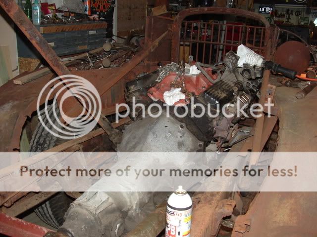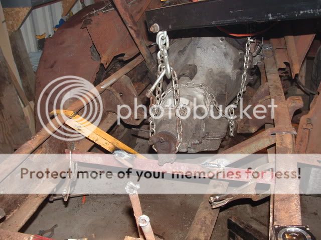 then to the installation of a SB chevy 350 with a TH400 bolted to it.. goin to use the original 2 speed t case.. ( hope it lasts lol )