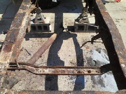 Alright finally got a update. the snow meltede so i could move it to the sement pad. not the best place but its all i got to work on it with. well im removing the axles. i had to cut the shocks off because they were so rusty. i have to cut the U bolts but didnt have another grinding wheel and TSC was closed. hopfully will get a wheel tomarrow.