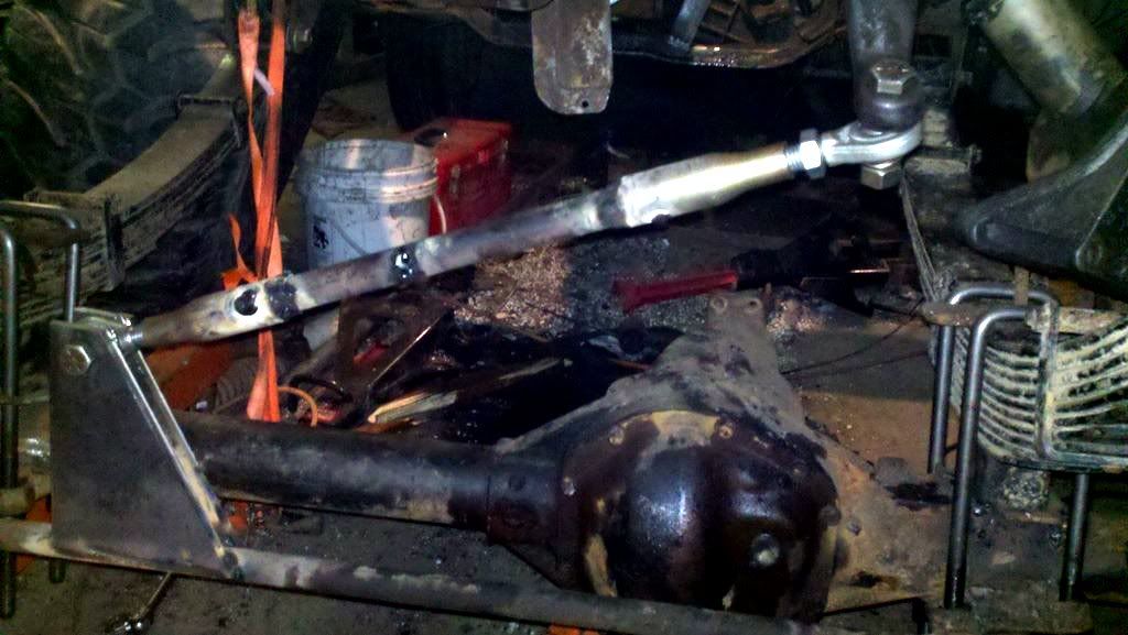 pretty much wat the setup is is you have your tierod and u weld two plates on each side drill hole on each one run a drag link from steering box to these plate have a heim on end run bolt through. ranger wheeling mie has same setup on his f250 bogger look it up