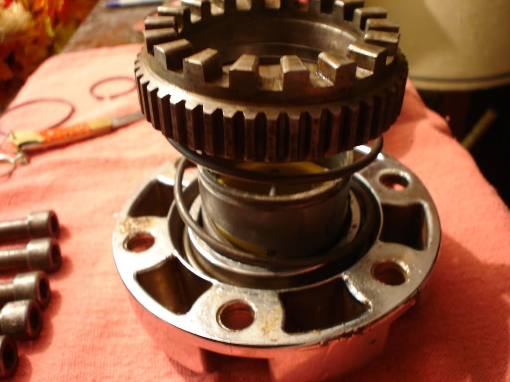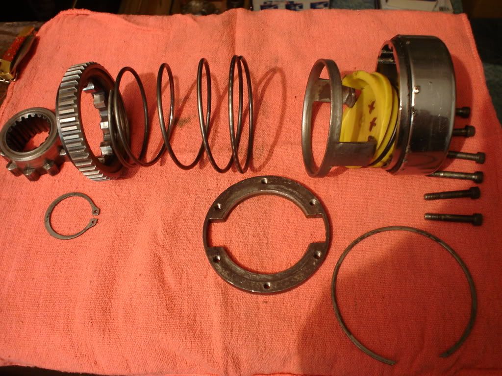 Here is a WARN external bolt on hub for the HD44, the design is simple, easy to use, but unlike the Spicer, the Warn uses 4 small coil springs for engaugement.......these springs are small compared to the large coil spring of the spicer. The Hub gears are also much smaller than the Spicer.