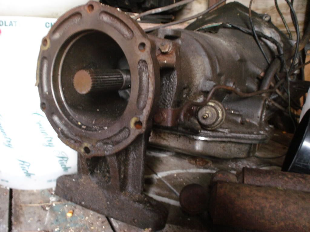 Shown here is a 4x4 350 turbo with adaptor out of an 81 chevy, notice the longer rear shaft. Also this trans is a  K-case model, and  it has a locking torque converter.