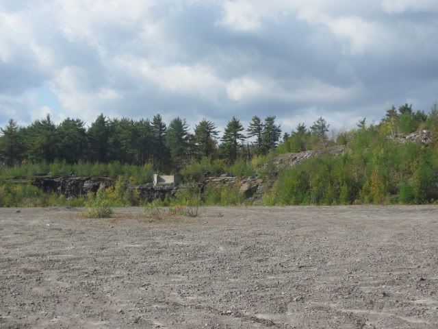 It opens up to a sand pit area with a small cliff on the far side. It's a sand pit but not like you would think, its grey stamp sand (stone dust) and its everywhere! There was a few dirt bikes rippin' around the area so I went slow. I was pleased with what I saw, I mean sand pits can be cool places to mess around right? So my buddy points off to the far side of the open pit and tells me to go that way, and I do. We come up on the far left side of the cliff area and there is two ways that head up around to the top, one is gravel with small rocks mixed in, and the other is bedrock steps. I went up the easy way. We get up to the top and the view wasn't spectacular but it was cool, you could see for a decent ways off. He then points towards the backside and to a trail that leads off into the woods and we head down it. It wasn't really a tough trail. It was really wide open and had a sandy/gravel surface. A little ways in the trail forked and he pointed right and said not to go that way unless I was serious. I took his word for it and veered left. We went up a small wet rocky climb and emerged into an intersection. So my buddy said if I went straight it goes out for a few miles and it was pretty much like what we just came through. Then he said if I went left he couldn't guarantee we'd make it out alive and then went on to tell how he and someone went that way and drove for hours before they got stuck in the middle of a huge wet area and got lost trying to walk out to get help. Anyways he said to go right that he wanted to show me something, so I did.