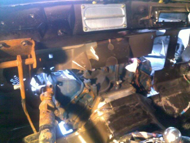 Got firewall cut out so i could move cab forward on frame. Now time for some welding to fill the hole.
