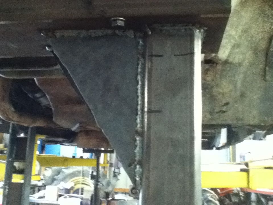 Those shackles are fine the way they are the wont ever move with what im going to do with it. Im not monster truckin' like everyone else. The shackles are 1/2'' think cold rolled steel stock with 5" c-channel inbetween then. All welds are triple stichted. 1/2" bolts..... The front ill NEVER think twice about moving, cause if it does i WILL need a new truck. Its bolted to the stock hanger points, frontclip, and frame, Triple stitch weld all the way around. The tubing that the hanger mounts are on now is inside of the tube mouted to the truck. Triple stiched outside and much as humanly possible inside. The hangers on front are triple stitched also. So im not going to worry about my front hanger mount, ever. And as for the shackles, if they ever bend twist or break. Ill build a hanger just like the rear.