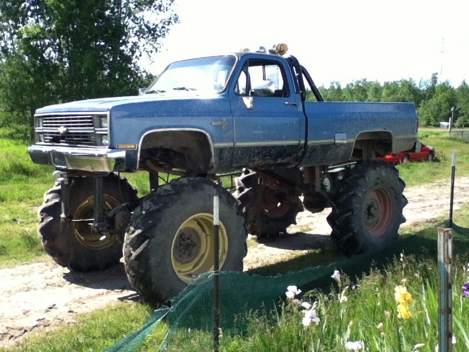 87 chevy short box 1 tons 38s 350 vortec 350 th 208