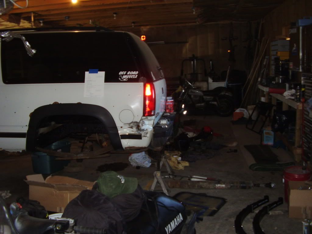 Wow long time since update. Still sitting on bump stops in rear. Ran truck few mud party weekends and a friend's Batchelor party night. That night was it's last run for a while hit a tree head on and it did not move. Lol