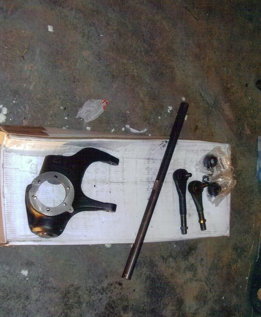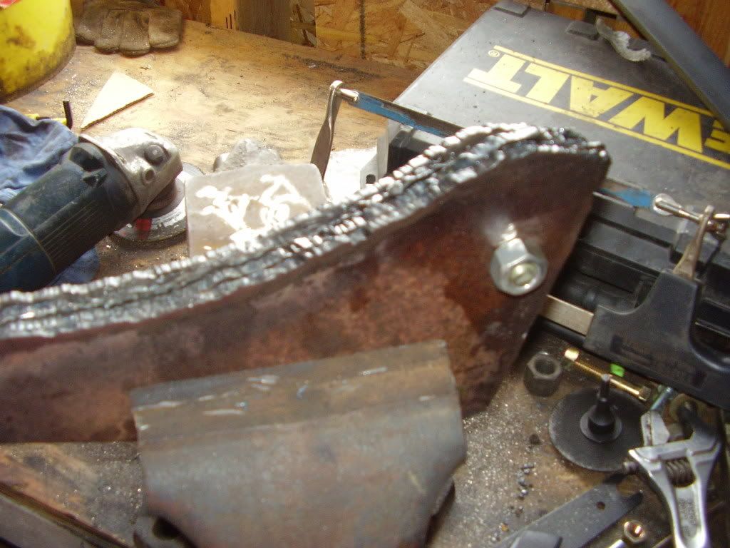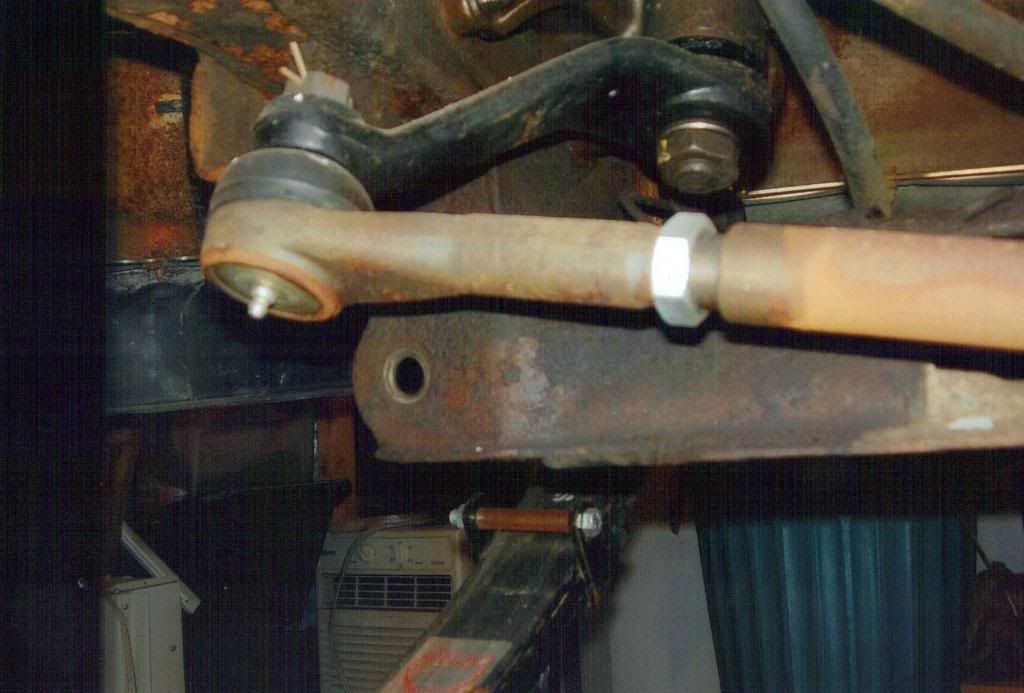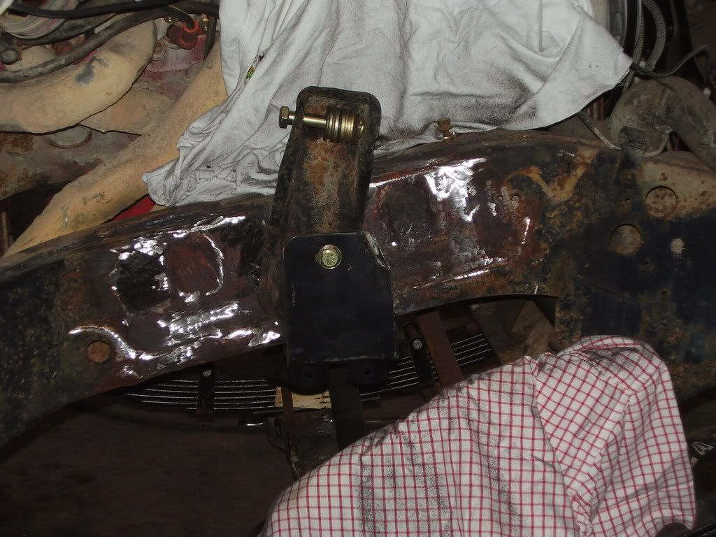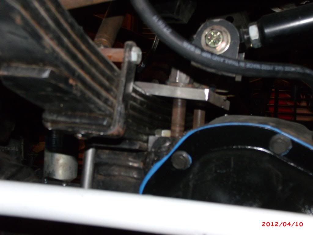 Axle had outers cut off - turned center section to limit some drive shaft angle - outers welded back on - shim welded on spring plate too fix sping angle - witch leaves the two studs at the wrong angle - this is how I got axle - if you see in pic they bolted square stock to axle at wrong angle and fixed by bending square stock in rear adding threaded rod- - front treaded rod in axle front stud hole - locked down square stock with nut - then bent threaded rod too fix wrong angle. This my have worked for them but I know it has been bugging me sence I got axle. I new I had to do something an never adressed it till now.  I'm Thinkin  will be strong when it comes back from its surgery