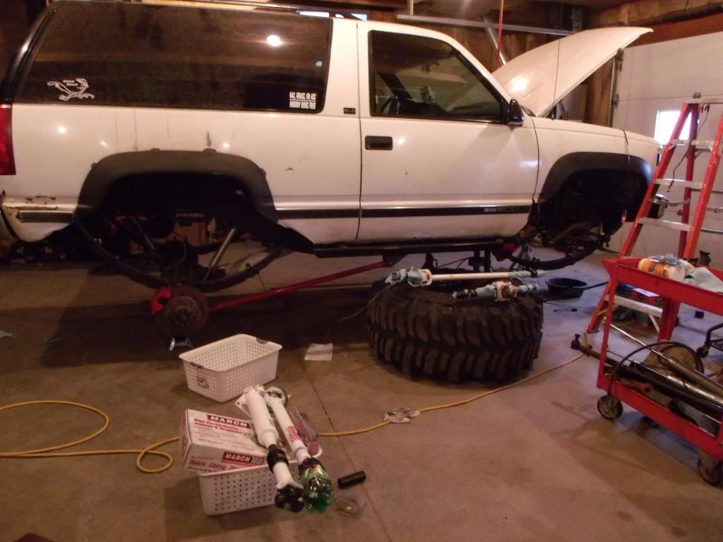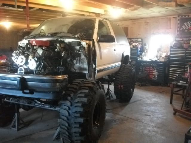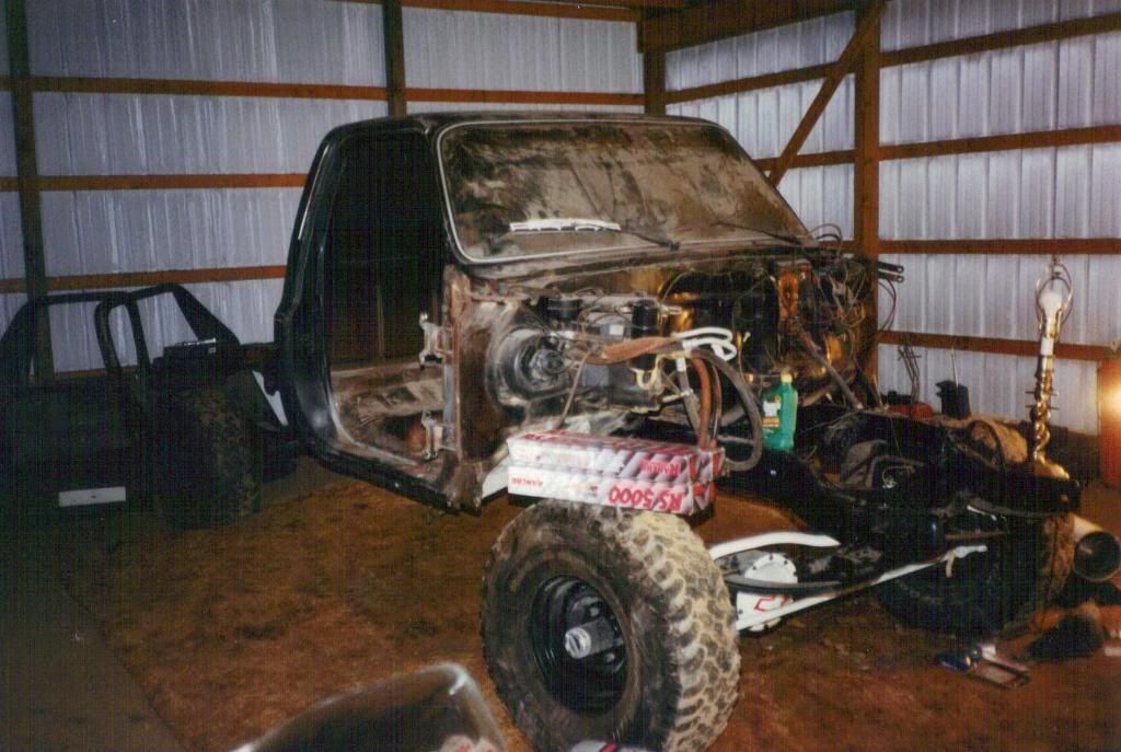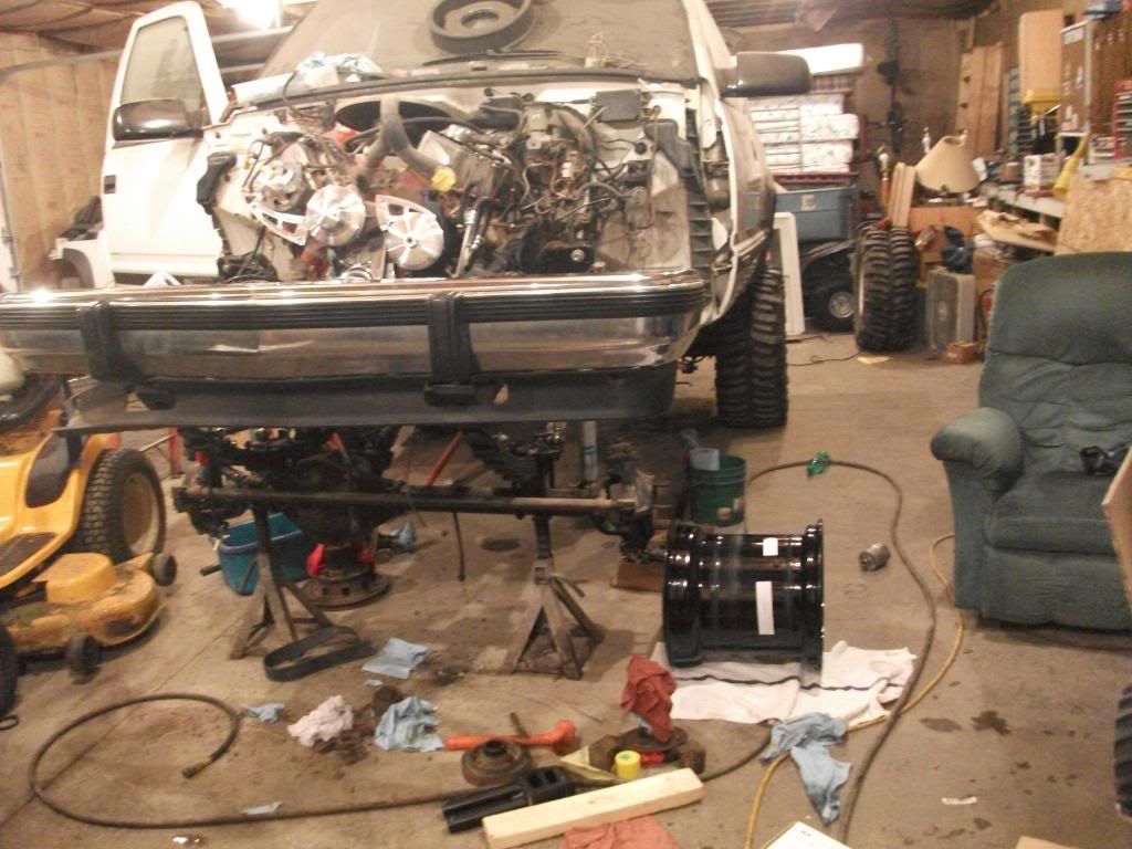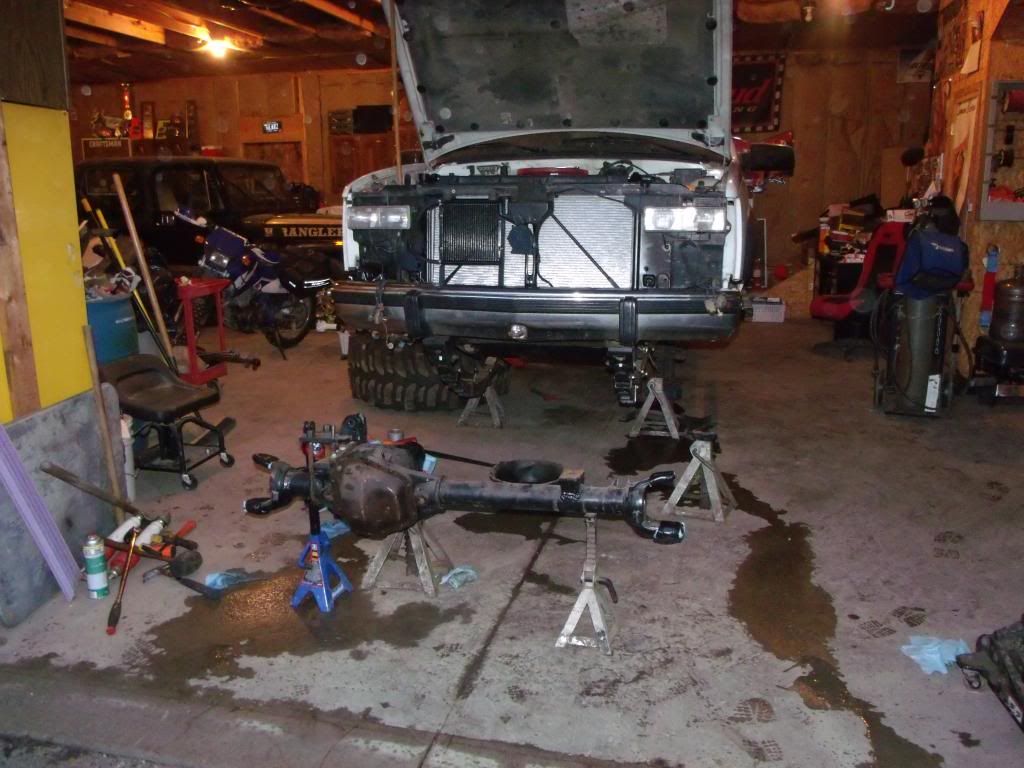 . Got front clip back on, raidator mounted, large trans cooler mounted ,engine chain down,battery mounted, front Bump to the top! stops in, cross brace over rear drive shaft notched an remounted, front drive shaft took out to upgrade to 1410 joints an got rid of double vilosity joint. mounted trans temp gage. ready for fuel if it only had a front end under it.  Sad Took it out, striped it to just a housing. Haveing housing milled an fab up mount to fix the two stud problem I had. O-so close  the DIRTIEST WEBSITE on the NET!