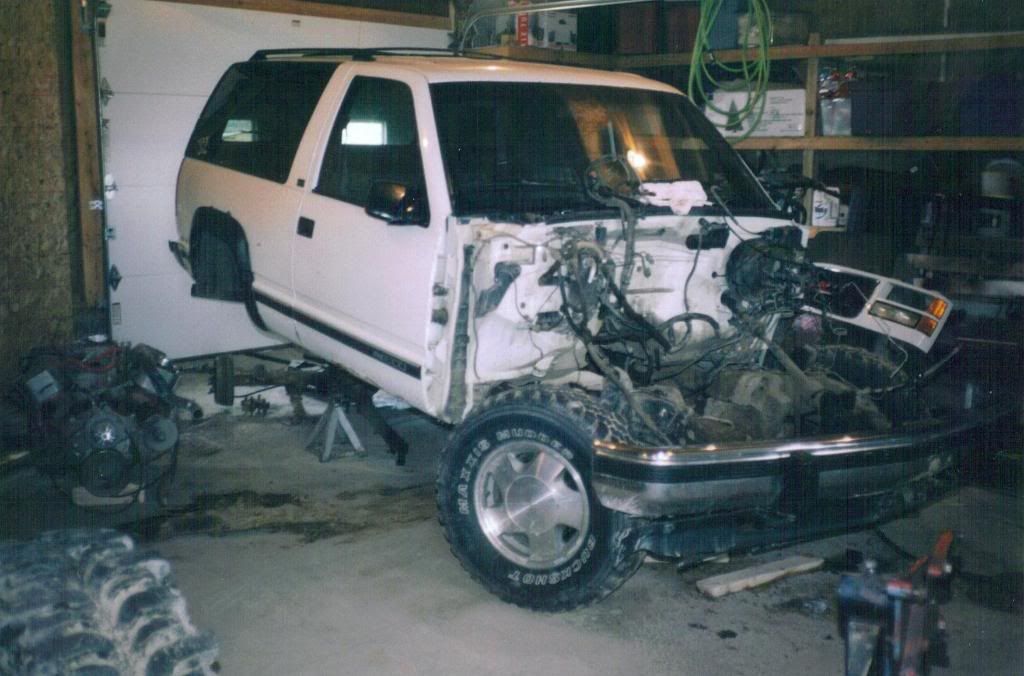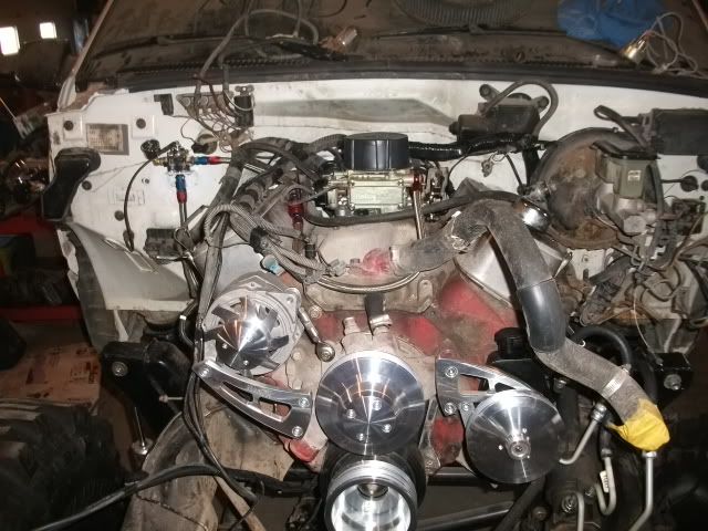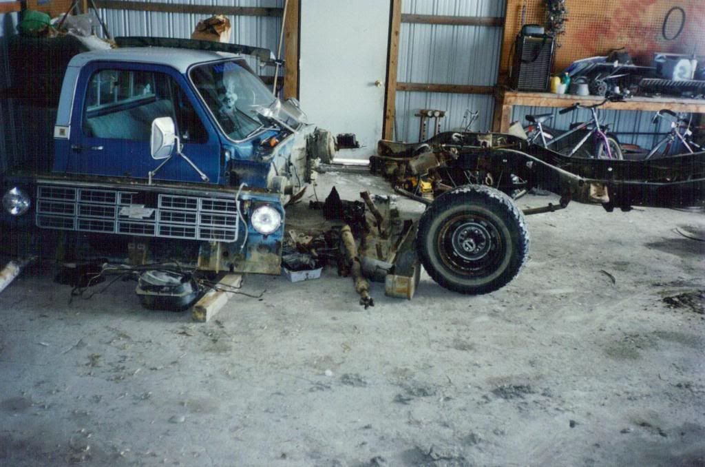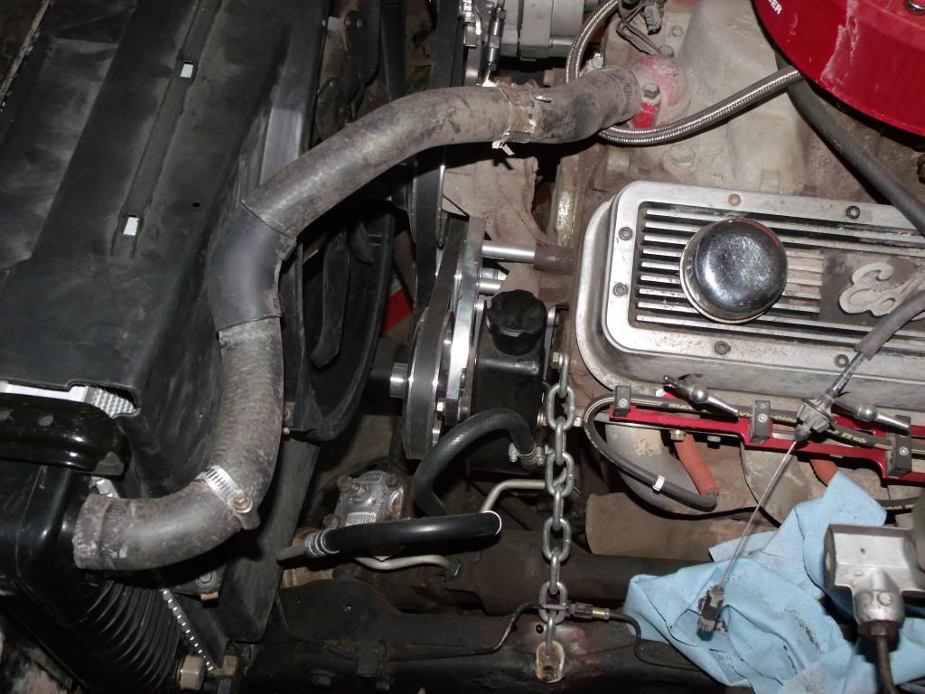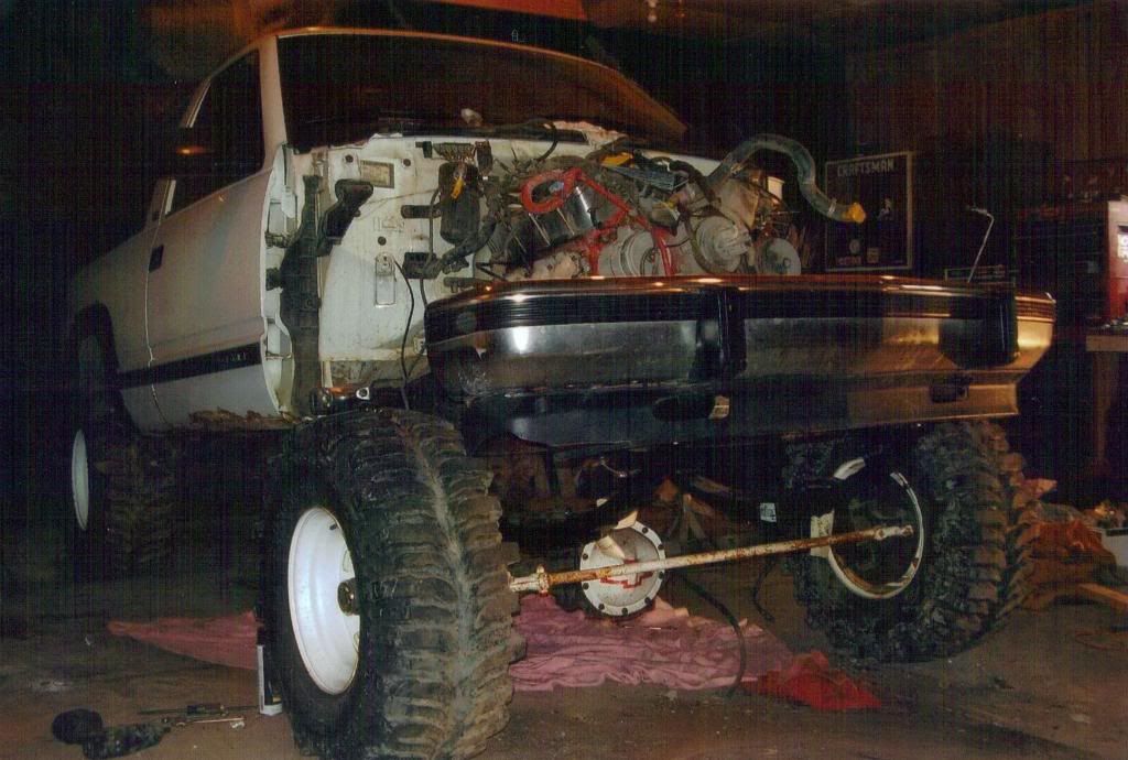 . Got front clip back on, raidator mounted, large trans cooler mounted ,engine chain down,battery mounted, front Bump to the top! stops in, cross brace over rear drive shaft notched an remounted, front drive shaft took out to upgrade to 1410 joints an got rid of double vilosity joint. mounted trans temp gage. ready for fuel if it only had a front end under it.  Sad Took it out, striped it to just a housing. Haveing housing milled an fab up mount to fix the two stud problem I had. O-so close  the DIRTIEST WEBSITE on the NET!
