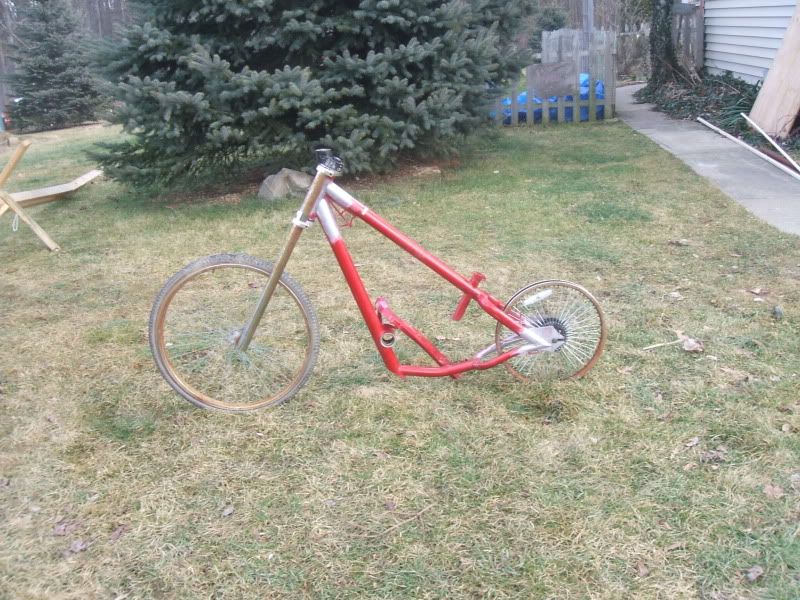 Well I finely got some of the part for it.  They have been sitting up North at my folks shop for almost 2 months witch sucked.  I could not send it out to get welded up until the seat, and handle bars showed up to make sure my stuff would work out.
