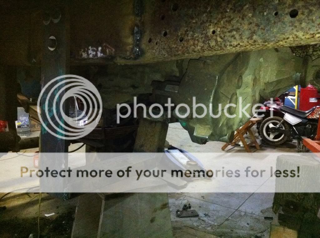 The last pic of the cross member- I had to mount it on an angle to match the angle of the transmission mount so there wouldn't be tension always on it. I could've just changed the angle of the bottom piece of C channel to match it and welded the sides straight but was too late. Don't think either way would've been any better than the other anyway. Built in drive shaft loop in it too. That's why it's so low.