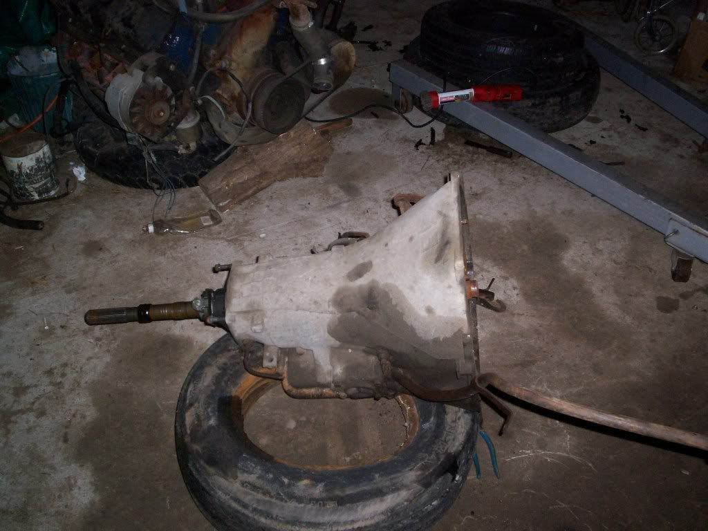 just put the trans in didnt hook anything up tho got to dark lol gunna be puttin in the shop maybe tomorrow if i got time, still waiting on the motor mounts, oh got the oil dipstick in and alt. bracket!!  ++peace forddgal fordd