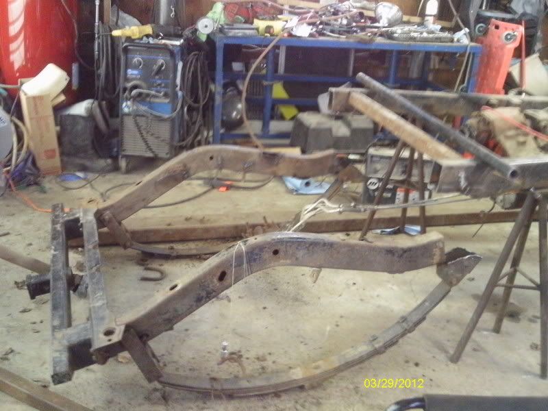 rails welded up and tacked to rear crossmember before attatching to front rails