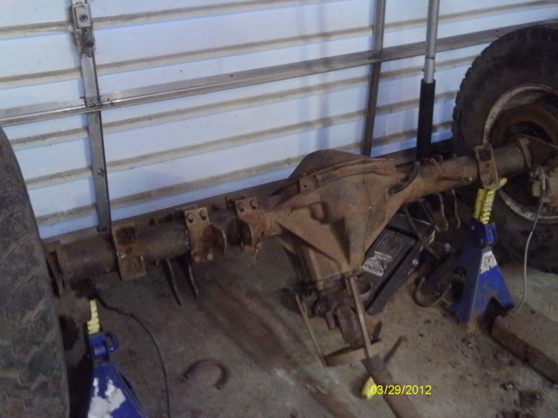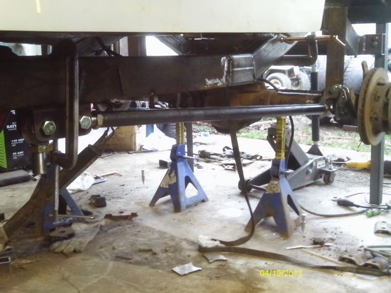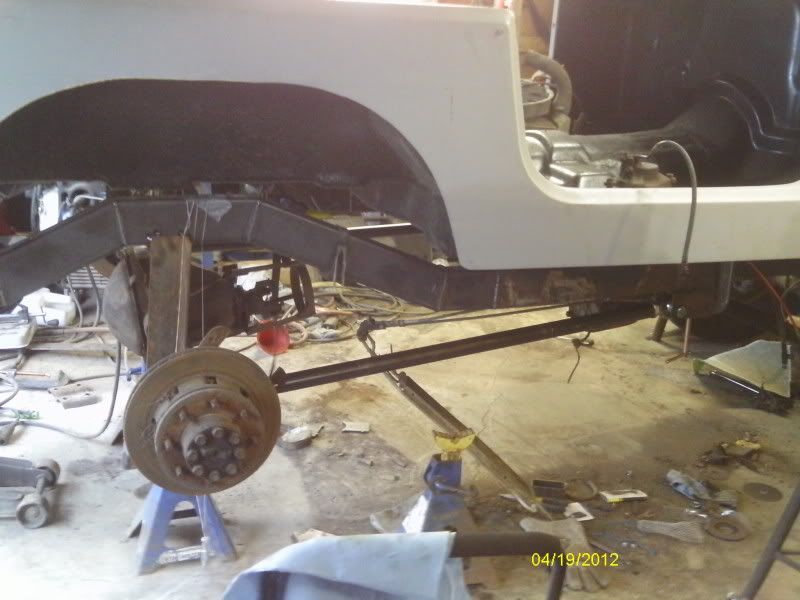 made somemore progress on the jeep. The rear frame is done, axle is cleaned of all brackes, lower link mount tacked to axle, lower link mount for frame end made, some of the link bars threaded, tub cleared for tires.