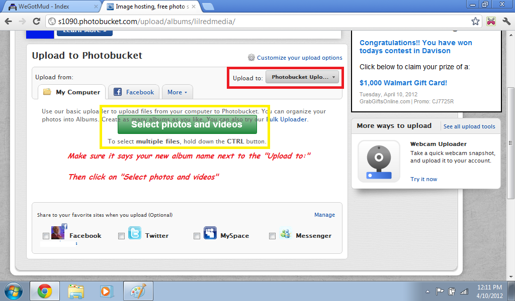 2. Photobucket (you have to sign up but you get a album you can come back to)