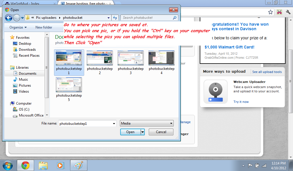 Go to wherever your pictures are saved and select 1 picture, then click "Open"