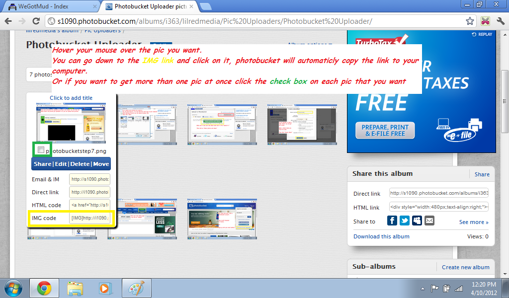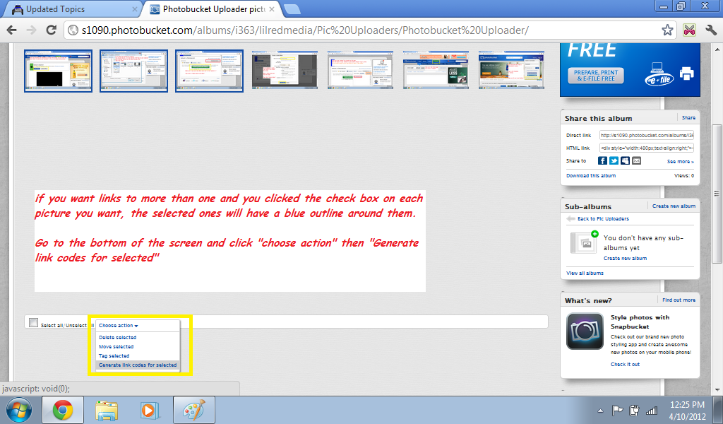 If you are only getting a link to one picture SKIP the next 2 steps.