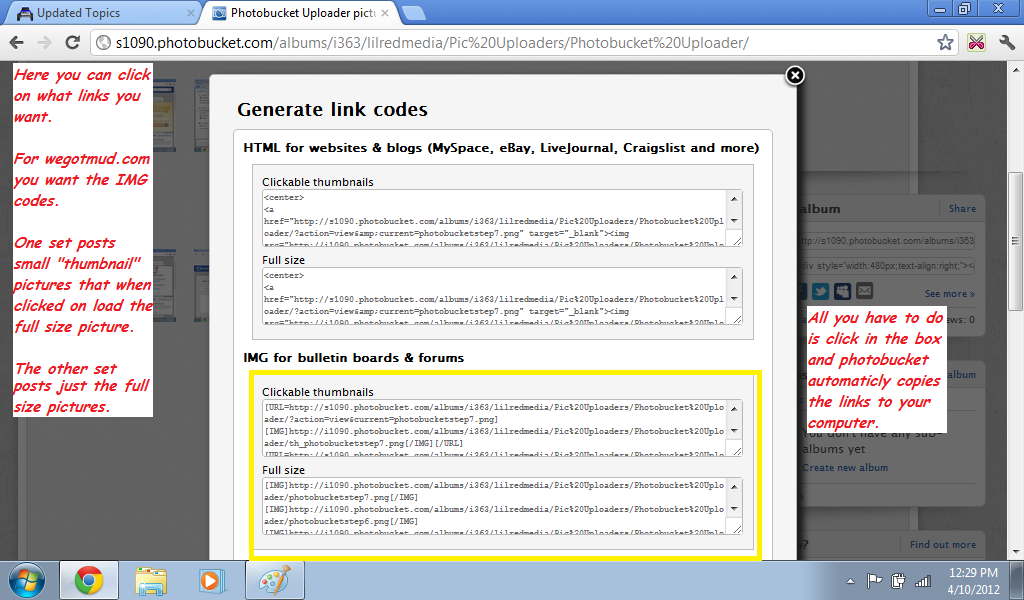 Once your Pic has uploaded it will take you to this page with the list of Links. For  ==wgm you want the IMG links.