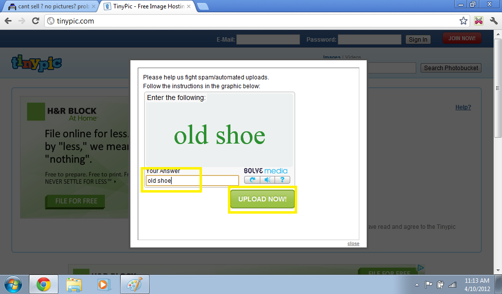 You might get one of these (spam prevention) just fill out the box and click "Upload Now"