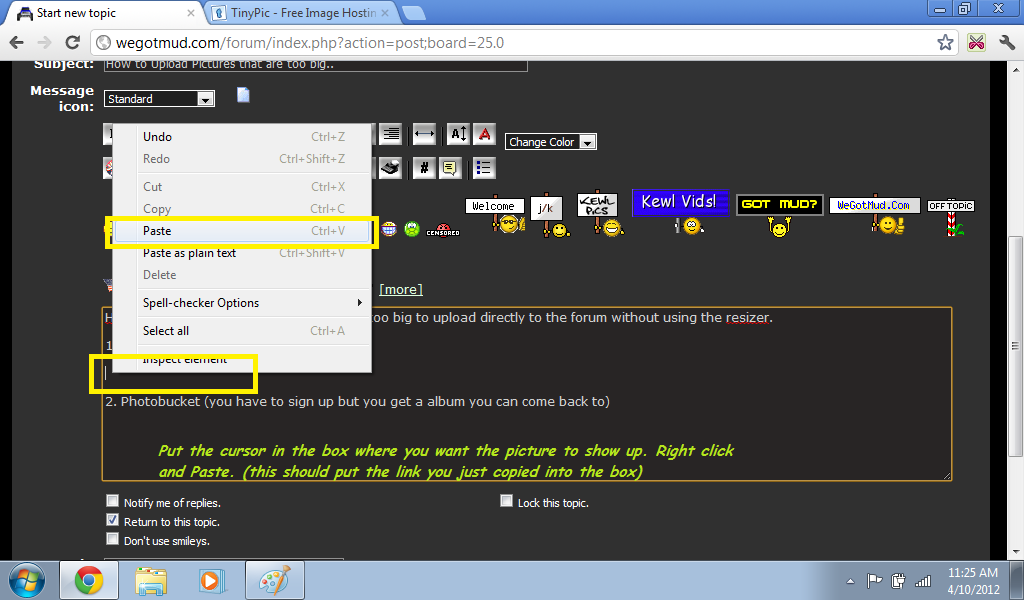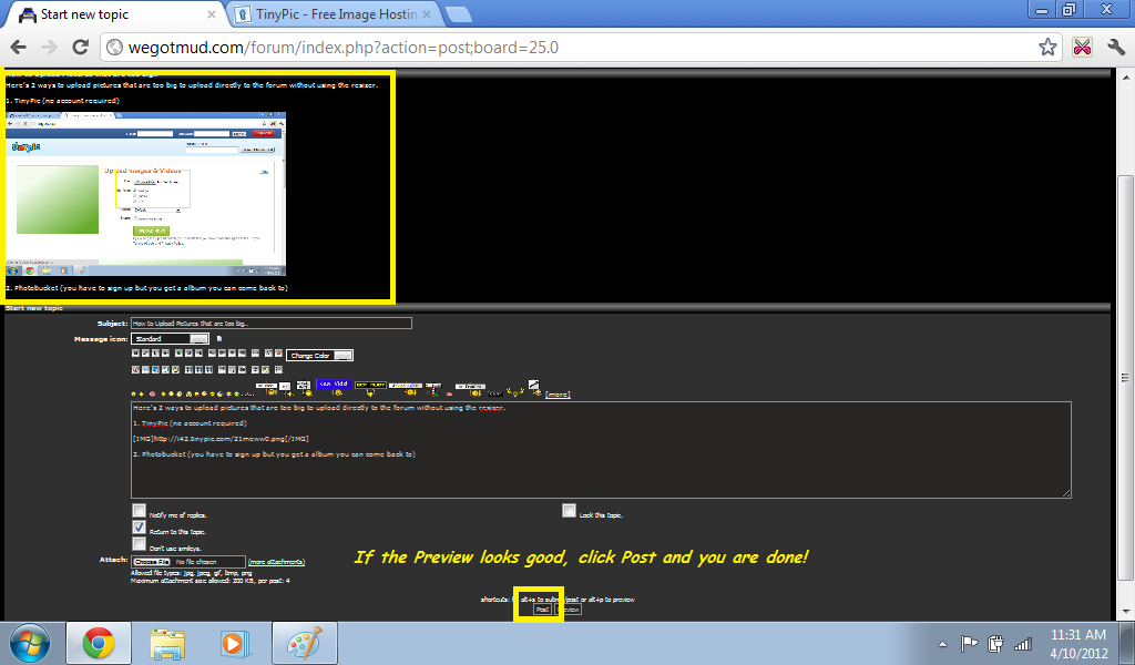 Here's 2 ways to upload pictures that are too big to upload directly to the forum without using the Resizer