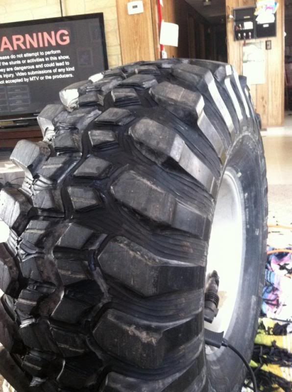 picture of what my tire looked like before and after we cut them!