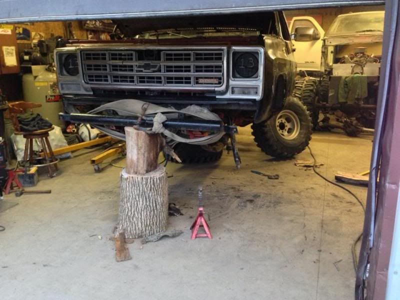 didnt take any pics of installing my rear 14 bolt, but here is the truck after i took out the corp 10 bolt front end.. and my new jack stands i made lol