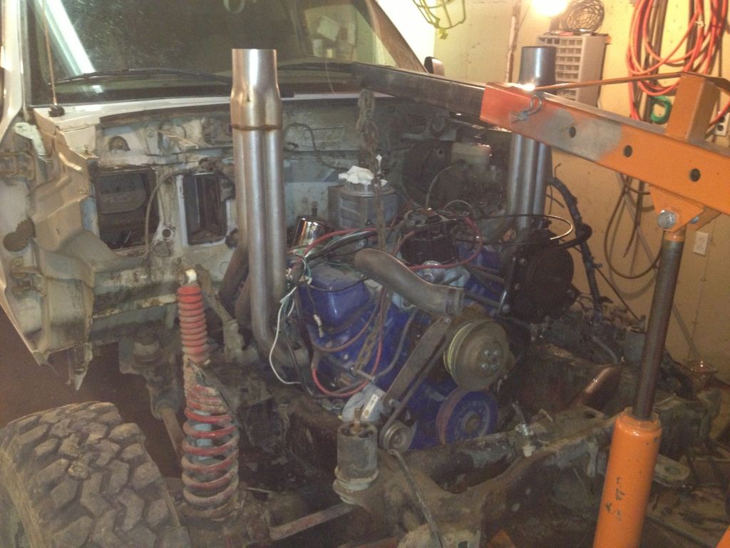 Been a slow project but I got the big block set in for the first test fit gonna have to weld in mouts and get the motor all hooked up then ill have to put he 1tons and everything out side becouse it's to tall for the garage