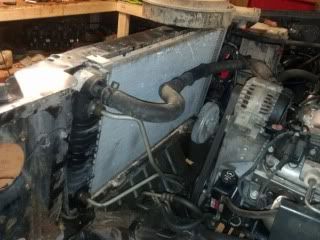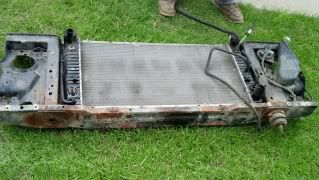 Picked up a radiator from the junkyard from a truck with a 6.0. This made it simple for my steam line and oil cooler.  Be sure to grab the surge tank too because your gonna need it. Also take the little c clip and grab the nut and some line so you don't have to buy those later for the trans and oil cooler.