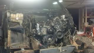 Motor went in pretty smooth. Transmission mounts lined up, dirty dingo mounts lined up, the oil cooler lines needed some bending but I made the stock ones work.